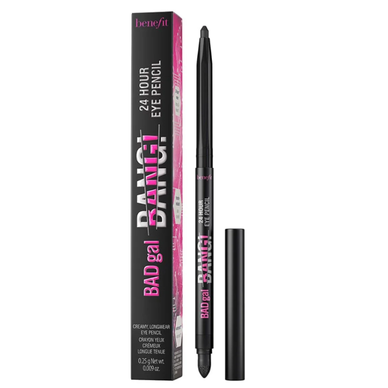 Benefit BADgal Bang! 24-Hour Eye Pencil in Pitch Black is a high-impact eyeliner designed to deliver intense definition with exceptional staying power. Created by Benefit Cosmetics, this waterproof eye pencil combines bold, saturated black pigment with a smooth, glide-on texture that makes application effortless. The deep matte finish enhances the eyes with dramatic clarity, whether you prefer a sharp, precise line or a softly blended smoky effect. Compact and practical in its automatic twist format, it eliminates the need for sharpening while ensuring consistent performance with every use.