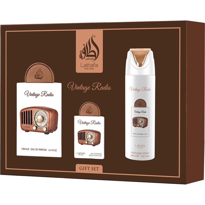 Lattafa Vintage Radio gift set - EDP 100 ml + EDP 20 ml + deospray 200 ml