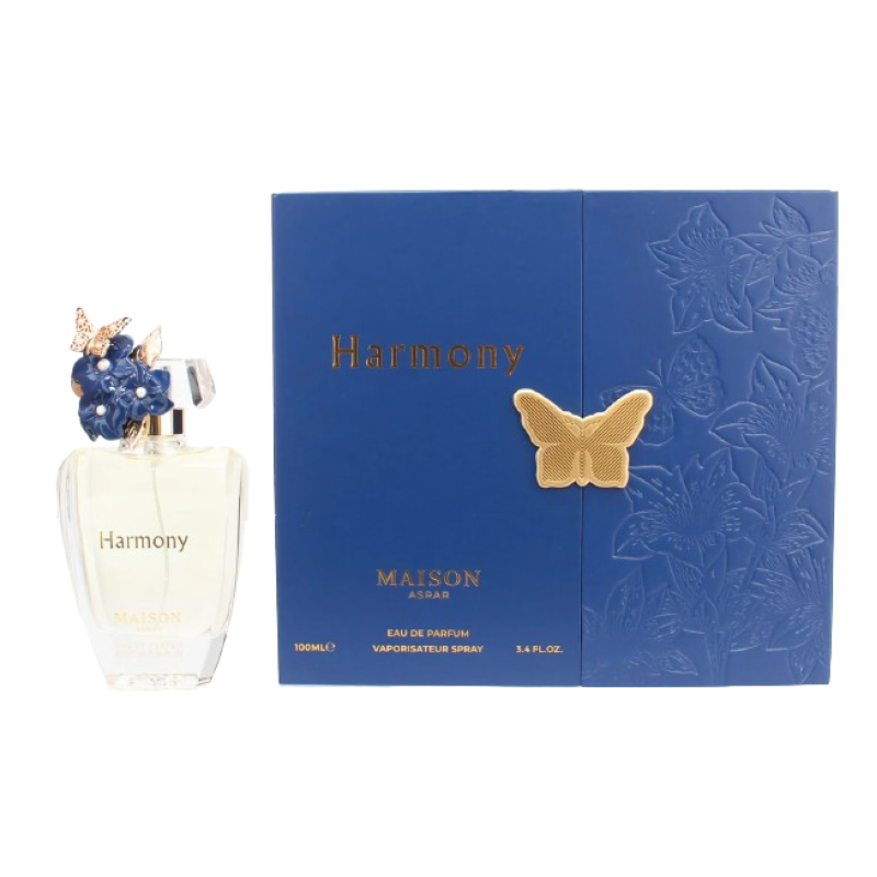 Maison Asrar Harmony EDP 100 ml is a smooth and effortlessly balanced unisex floral–woody–musk fragrance crafted for both women and men.