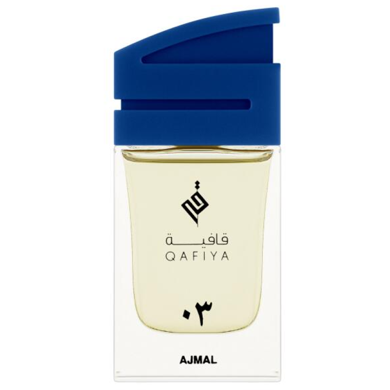 Ajmal Qafiya 03 Eau de Parfum 75 ml is a unisex woody-spicy fragrance with fresh spices, violet, rose, and a warm base of sandalwood, amber, leather, and musk, offering a modern yet timeless scent with lasting elegance.