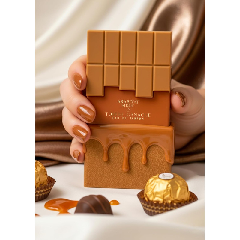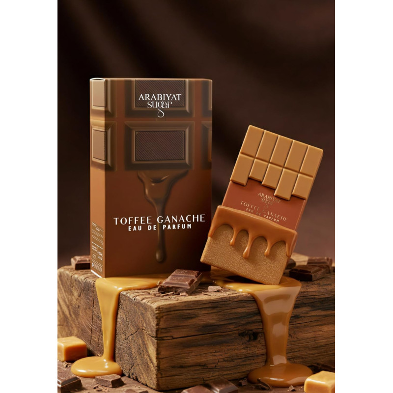Arabiyat Sugar Toffee Ganache Eau de Parfum 100 ml is a rich unisex gourmand fragrance inspired by decadent desserts and creamy confectionery creations. Crafted by perfumer Bérengère Bourgarel and launched in 2025 as part of the Sugar collection, this scent belongs to the Oriental Vanilla Gourmand fragrance family. The composition delivers a warm, indulgent character where nutty sweetness, soft spices, and milky accords blend together into a smooth and addictive fragrance reminiscent of luxury pastry treats.