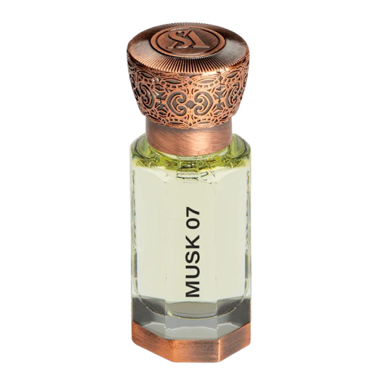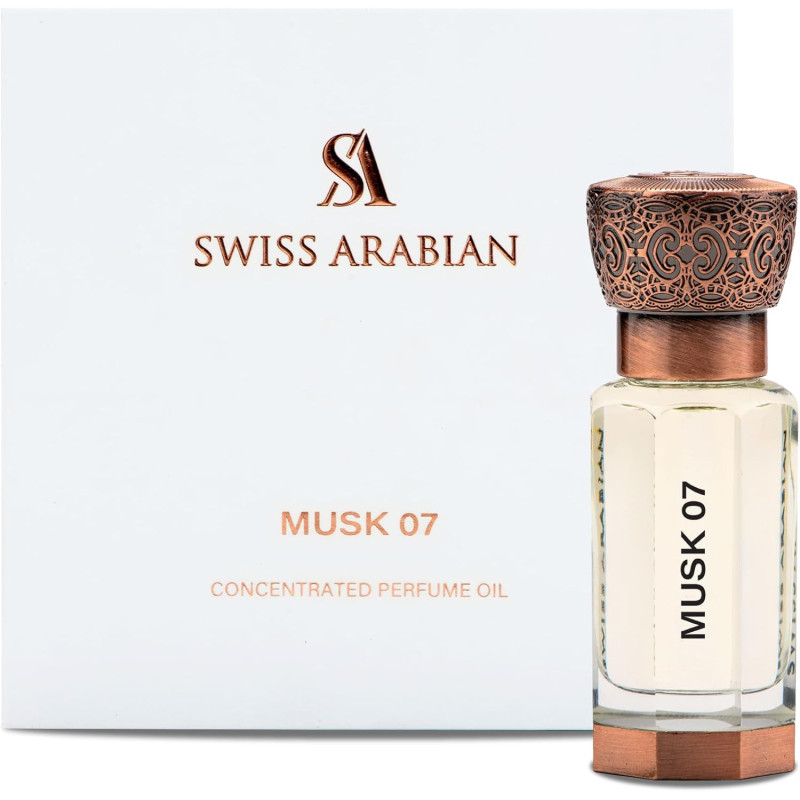 Swiss Arabian Musk 07 is a warm unisex perfume oil with bergamot, cardamom and elemi, wrapped in creamy musk, amber, vanilla and sandalwood. Intimate, elegant and long-lasting.