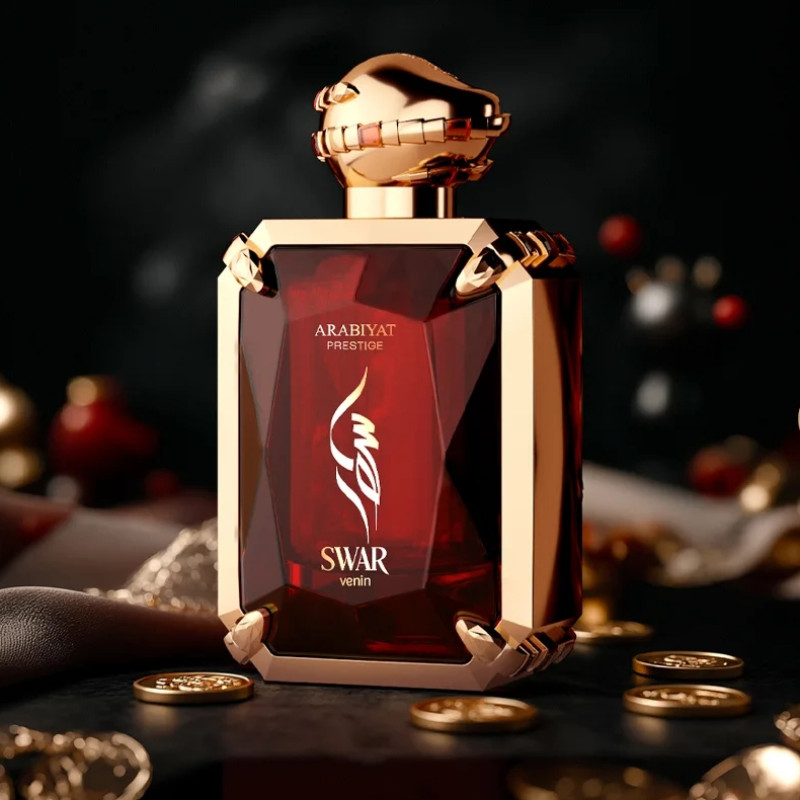 Arabiyat Prestige Swar Venin EDP 100 ml is an amber floral fragrance with cherry, raspberry and blackcurrant, unfolding into rose, incense and cedarwood over a warm base of musk, ambergris and vanilla. Vibrant, elegant and long-lasting.