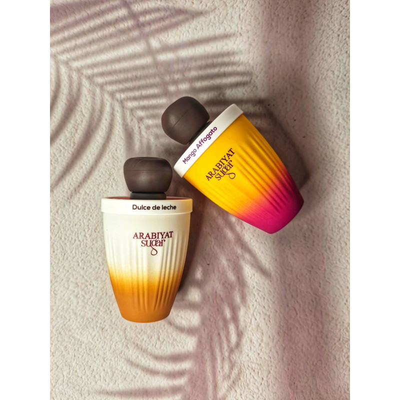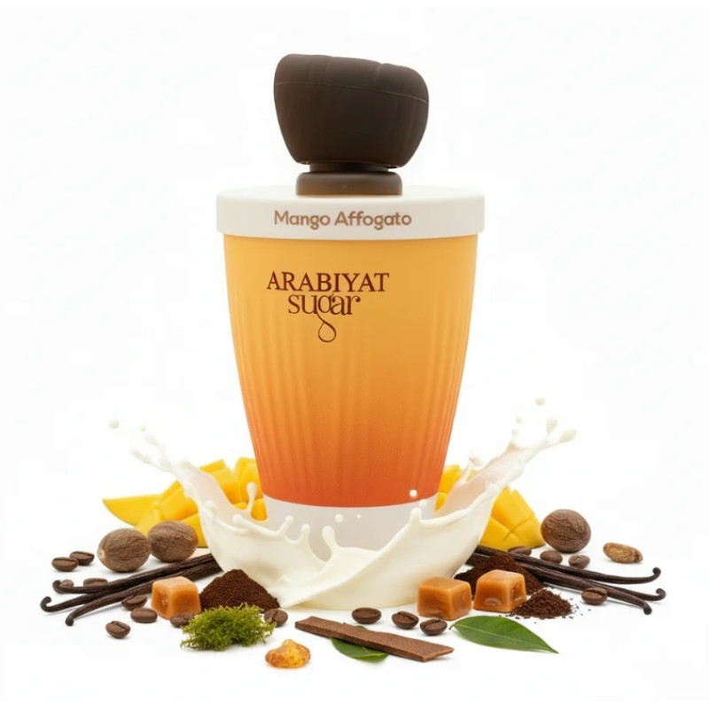 Arabiyat Sugar Mango Affogato EDP 100 ml is a spicy fruity woody fragrance with mango, nutmeg and clove, evolving into leather, saffron and amber over a deep base of patchouli, vetiver and cypriol. Exotic, bold and long-lasting.