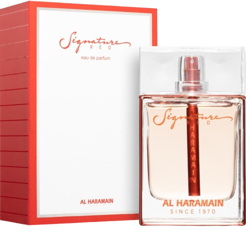 Al Haramain Signature Red 100 ml is a bold Chypre Floral fragrance for women, with fresh citrus top notes, a spicy floral heart, and a warm woody base, delivering confidence, elegance, and a lasting luxurious scent.