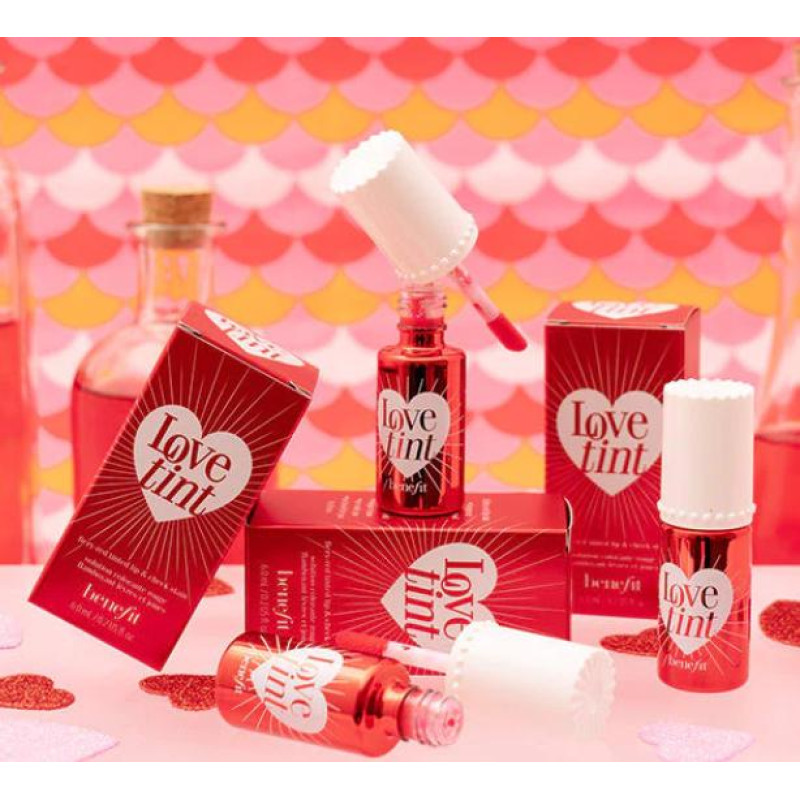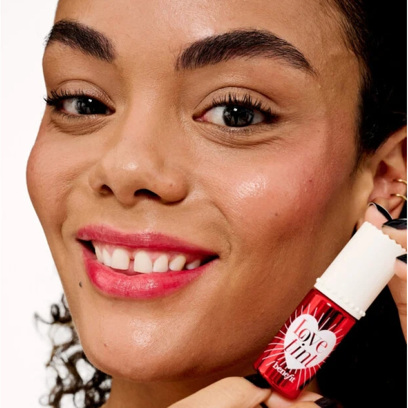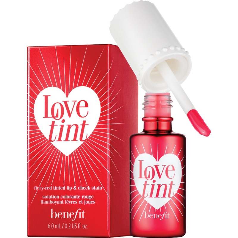 Benefit Lovetint Fiery Red Lip & Cheek Stain adds a bold yet natural flush with a lightweight, buildable formula. Smudge-resistant tint blends effortlessly for vibrant, long-lasting color on lips and cheeks.
