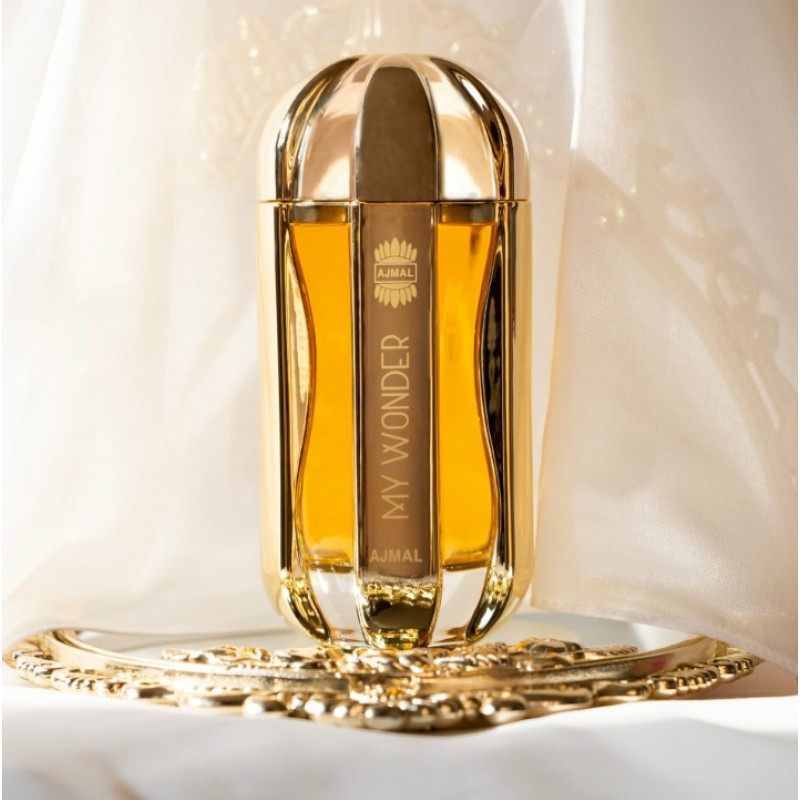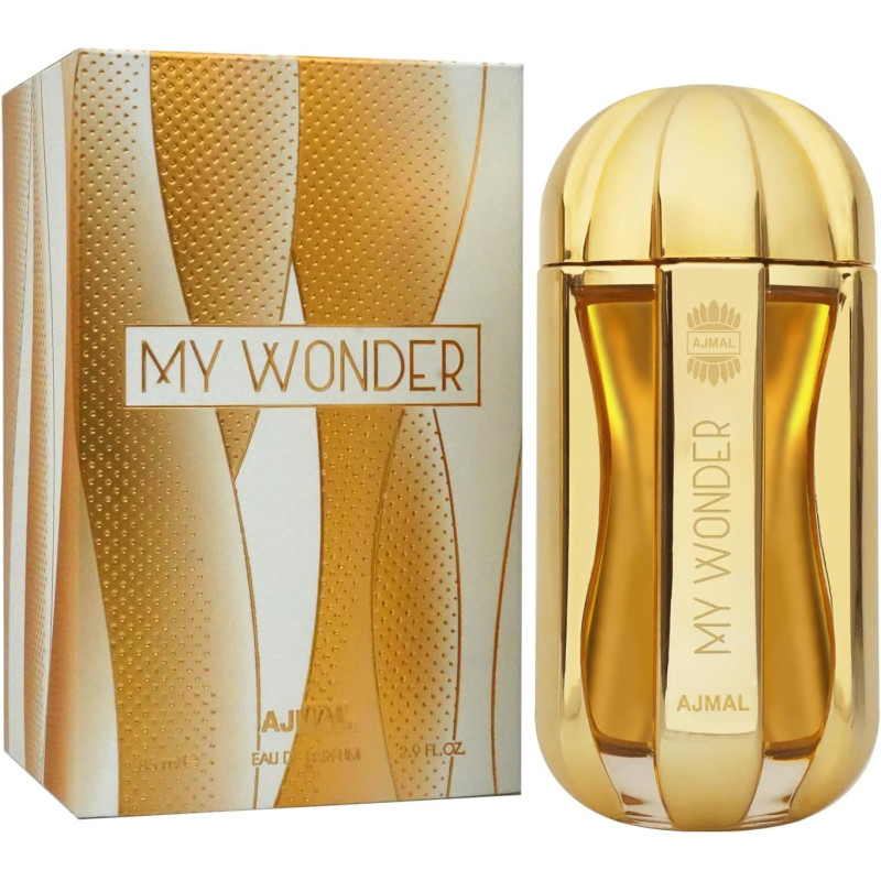 Ajmal My Wonder Eau de Parfum 85 ml is a feminine floriental fragrance with lemon, orange blossom, peach, sandalwood, ambergris, and vanilla, offering a fresh, warm, and elegant scent that is sophisticated, alluring, and long-lasting.