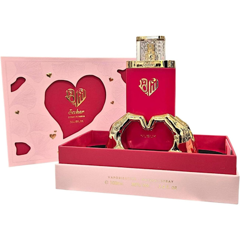 Nusuk Saher Extrait de Parfum 100 ml is a graceful feminine fragrance that fuses fruity freshness, floral elegance and a soft gourmand base into a refined, modern expression of femininity.