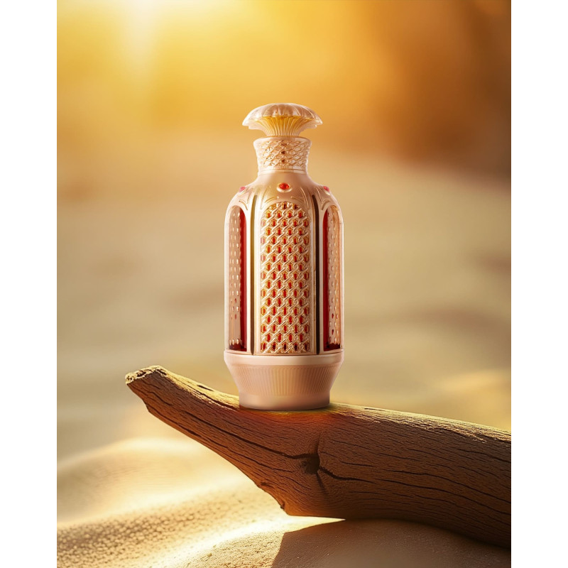 The fragrance opens with fresh rose petals layered with pear, enriched by hazelnut and a subtle hint of pink pepper, providing a lively and inviting introduction. At its heart, warm and aromatic saffron, creamy musk, rich amber, and delicate jasmine combine to add depth and complexity. The base unfolds with smooth sandalwood, comforting vanilla, opulent ambergris, and resinous labdanum, leaving a long-lasting impression of sophistication and refinement.